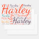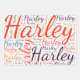 Harley. Mostrar y llevar este popular y hermoso nombre femenino diseñado como colorido nube de palabras hecho de tipografía de letras horizontales y verticales cursivas a mano en diferentes tamaños y adorables colores frescos. Usa tu nombre estadounidense positivo o muestra al mundo a quien amas o adoras. Mercar con este suave trabajo de texto es un gran regalo, no sólo en el mes de la historia de las mujeres, o regalo de cumpleaños.