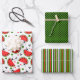 Este divertido juego de papel de envoltura es el complemento perfecto para un fiesta temático "one in a melon" o cualquier evento temático de picnic o verano. La primera hoja de envolvimiento de regalo muestra una linda hormiga de picnic jugando al peekaboo detrás de una jugosa trozo de sandía salpicada de polkadots rojos, negros y verdes. La segunda hoja de papel es un gran diseño multipropósito con un fondo verde oscuro con polkadots negros. La última hoja de papel de envolvimiento tiene rayas verticales vibrantes en rojo, verde, negro y blanco.