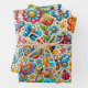 Celebra la alegría del verano con este papel de envoltura vibrante y juguetón, con audaces mariposas de estilo personalizado, libélulas, babuinos y abejas bailando entre coloridas flores.