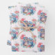 Envuelto hojas de papel con la imagen de un par de lechuzas enamoradas sentadas juntas en una rama de árbol. Rodeado de flores azules, verdes y rosas.