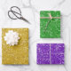 Hoja De Papel De Regalo Mardi Gras Gold Morple Green Faux Purpurina Bling