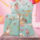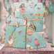 Una acuarela pintada de sábanas de papel para los niños con fondo de colores pastel vivos y un jardín de hadas con hadas aladas, gnomos, ranas, caracoles, mariposas y setas.