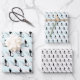 graphic skier design, 2 sheets with snowy blue background and one black and white, matt finish