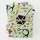 Creative doctor graduation gift wrap for medical school grad featuring healthcare supplies on colorful backgrounds.