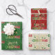 envuelva todos sus regalos de vacaciones con esta elegante tipografía de guion dorado en 3 hojas de coordinación de colores diferentes. Las sábanas rojas, verdes y doradas le dan un toque tradicional fresco. el oro se simula en el diseño.