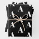 Hoja De Papel De Regalo Monograma personalizado blanco negro letra inicial