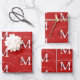Hoja De Papel De Regalo Monograma rojo navideño personalizado