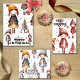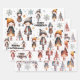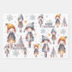Navidades muy amables envolviendo hojas de papel con un diseño caprichoso con chicas, copos de nieve y árboles de Navidad en una variedad de colores, desde oro verde azulado hasta adorable rosa.