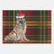 Un adorable perro belga de Tervuren está listo para las vacaciones con el gorra de vacaciones. Este lindo perro Navidad está emparejado con una manta roja, verde y dorada de vacaciones en este juego de regalos para el amante del perro.