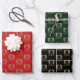 Navidades negro, oro falso, rojo y pino oscuro adorable campanas patrón elegante festividad Hojas de papel envuelto. Ideal para Navidades, vacaciones y cumpleaños. Colores variados.