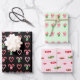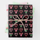 Estas sábanas de papel de envoltorio son versátiles y se pueden usar para dar regalos o proyectos de arte y artesanía. El diseño incluye Navidades dulces y latas de caramelo en un fondo negro, verde y rosa.