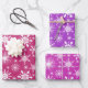 Juego de papel de envoltura con estampado de copos de nieve y chispas, perfecto para los regalos de sus Navidades a la familia y amigos. El diseño se compone de diferentes copos de nieve blancos, chispas y manchas en tonos rosa y violeta. Este patrón de copos de nieve instantáneamente crea el maravilloso sentimiento de alegría y festividades de los Navidades.