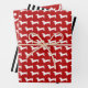 Festividad festiva Patrones de silueta de perro de Dachshund en rojo y blanco con una audaz hoja de acento de rayas negras y blancas para complementar el Juego de Papel de Envoltura.