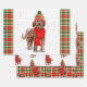 Este bonito Labradoodle marrón está listo para las vacaciones con una bufanda roja de invierno y beanie de invierno a rayas. Este lindo perro Navidad está emparejado con una marca de mantas rojas y verdes de vacaciones a juego en este conjunto de envueltos de regalo para el amante del perro.