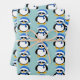 Cute Navidades de pingüino fresco patrón de invierno Hojas de papel de envolvimiento azul. Niños Xmas idea de regalo de decoración de árboles de navidad - ilustracion lindo de pingüino blanco y negro con sombrero de Santa azul, gafas de sol y bufanda.