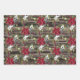 Navidades de madera rústica bonito y de poinsettia roja de vacaciones envoltura de papel de 3 hojas colección.
