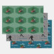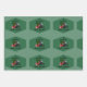 Envoltura de regalo para navidades personalizables con mistletoe, un tema de fútbol (gráfico de campo de fútbol, casco, fútbol y gráficos para jugadores), 3 sábanas, mostradas en verde, gris y verde azulado. Diseño de HAMbyWhiteGlove