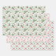 Un conjunto coordinado de 3 hojas de envolvimiento de regalo con enredos de follaje para Navidades y arcos en rojo y verde. El primer diseño presenta mistletoe, holly, abeto y bayas de Navidad en verde y rojo. El segundo diseño presenta una mezcla de arcos y cintas en rojo y verde. El tercer diseño cuenta con un enrejado con detalles de Navidades. Perfecto para una Navidad femenina, pero tradicional.