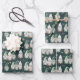 Navidades Gnomes en verde y oro en estos Navidades envolviendo hojas de papel. Conjunto de tres hojas.