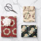 Tres sábanas de papel envuelto con ramos de flores rojas y crema. Adecuado para Navidades y cualquier ocasión especial. Tres Navidades Florales Rojas Envolviendo Hojas De Papel.