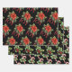 Hoja De Papel De Regalo NAVIDADES POINSETIA, HOLLY, CAÑA DE ARENA en NEGRO