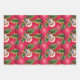 Este retro y vintage juego de papel de envoltura navideña muestra escenas cautivadoras en un vibrante y caliente fondo rosado. El punto focal es un gran arreglo floral para Navidades, con un diseño intrincado, con flores clásicas de vacaciones como las puntias, las hojas huecas y quizás algunos mistletos. Las flores brotaron en una paleta de colores rica y festiva, lo que le dio calidez al fondo invernal. El texto, elegantemente escrito con una letra vintage: "Noche silenciosa, noche sagrada" y "Todo está tranquilo, todo es brillante".