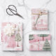 El hermoso patrón de Navidad vintage de acuarela es de tonos rosas y verdes. Papel de envoltura de regalo para Navidades rosados de moda.