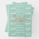 Collage de nombres verdes de la menta marina de moda envolver hojas de papel para una fiesta de cumpleaños o una ducha de bebé decorada con nueve tipos de letra diferentes que escriben un nombre personalizado en blanco. Envoltura personalizada de regalo para niños con tipografía divertida.