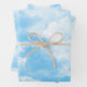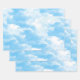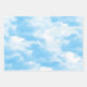 Nubes azules envueltas en hojas de papel. Cielo azul y nubes blancas.