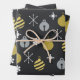 Hoja De Papel De Regalo Ornamentos de Navidad Retro Oro Negro