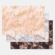 Tres hojas de papel de regalo coordinadas en oro rosa con patrón de mármol blanco y negro o revestimientos de cajón.