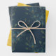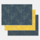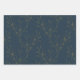 Papel envuelto con elegantes y delicadas brotes de oro contorsiona flores de orquídea y capullos sobre fondo azul marino y fondo texturado amarillo. Graceful floral floral botany Wrapping Paper. Colección de orquídeas azules suaves.