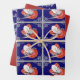Hoja De Papel De Regalo Pájaro rojo sobre azul-rojo personalizado y plata