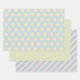 Celebra la primavera y la Pascua con este lindo envolvimiento de Pascua: 1. Patrón argelino con diamantes turquesa, violeta y amarillo con líneas punteadas blancas. 2. Puntos turquesa sobre un fondo amarillo. 3. Rayas diagonales de color amarillo, rosa, violeta, turquesa claro y turquesa oscuro. Los tres son de color coordinado. Tan adorable y muy versátil para cualquier celebración de Pascua o Recién nacido, Baby Shower, cumpleaños de niños...