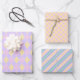 Celebra la primavera y la Pascua con este lindo envolvimiento de Pascua: 1. Patrón argelino con líneas punteadas amarillas, violetas y rosas. 2. Puntos de Polka Rosa contra un fondo amarillo. 3. Rayas diagonales de color amarillo, rosa, violeta, turquesa claro y turquesa oscuro. Los tres son de color coordinado. Tan adorable y muy versátil para cualquier celebración de Pascua o Recién nacido, Baby Shower, cumpleaños de niños...