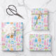pastelería fiesta color pastel rosa pastel, azul, verde, violeta y naranja, regalos y globos. Cada regalo tiene el número 10 para hacer que el chica de cumpleaños se sienta especial. A lo largo del patrón se añaden mariposas, flores, xo y corazones. Papel de envoltura de fiesta bonito para una celebración de 10 años.