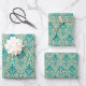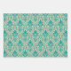 Hoja De Papel De Regalo Patrón Art Deco 01 - Verde azulado en blanco