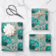 Hoja De Papel De Regalo Patrón de damasco floral plateado verde azulado vi