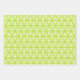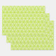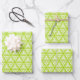 Un conjunto de tres hojas de papel de envoltura de 19x29" decorativas con grupos de complejos y brillantes movimientos verdes de cal en un patrón triangular para una sofisticada colección de presentaciones de regalo, y proyectos de artesanía diy
