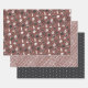 El espeluznante papel de envoltura de moda presenta un patrón de serpientes, cristales místicos, pociones, libros de ortografía, velas, tarros, cráneos, tarjetas de tarot y pociones en un fondo de terracota de tono oscuro, con dos patrones adicionales coordinados en color.