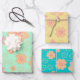 Hojas de papel de ajuste de patrón floral botánico retro. Mezcla y combinación de colores verdes, amarillos y turquesa por Dreaming Cocoon. Flores de color naranja de patrón vintage con el ambiente de verano, regalo perfecto para los amantes de las flores y los colores brillantes!