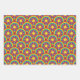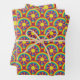 Cada hoja de papel envuelto en este conjunto de tres presenta un patrón gráfico de groovía inspirado en los años 70 con discos superpuestos en un arcoiris de colores centrado con un sol rayado ligeramente retorcido. Editar diseño para cambiar los tonos de fondo.