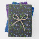 Patrón gris morado de arándano azul verde Hojas de papel envuelto.