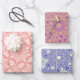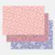 Hojas de papel de ajuste de patrones intrincadas. 3 x Papel de envolvimiento estampado en los colores melocotón/blanco, rubor/violeta y verde azul/pastel. Haz que tu regalo sea divertido y creativo con 3 patrones/colores diferentes.