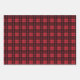 Hojas de envoltura rústicas, perfectas para Navidades, con tres patrones diferentes en rojo y negro. Tapado, cheque de búfalo y tartán.