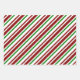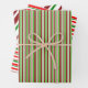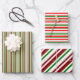 Estos divertidos diseños inspirados por Navidades presentan rayas de color rojo, blanco y verde. Hojas de papel de envolver festivas como estas podrían ser usadas cuando se dan regalos para celebrar a los Navidades.