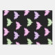Un conjunto de 3 hojas de papel de envoltura con patrones de Halloween con fantasmas, murciélagos, cráneos.