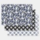 Estas sábanas de papel de envoltura divertida para jugadores de voleibol o fans tienen tres patrones individuales y complementarios — la hoja 1 presenta un patrón de aspecto 3D de bolas de voleibol que tienen paneles azules, negros y blancos - la hoja 2 tiene formas simples de voleibol blanco sobre negro de personalizable - la hoja 3 tiene un patrón simple espejo de bolas de voleibol azules, negros y blancos sobre blanco de personalizable - de katz_d_zynes