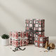 Conjunto de tres hojas de papel de envoltura con diferentes patrones. Cada hoja presenta un patrón geométrico de mosaico sin fisuras en rojo oscuro, gris oscuro y blanco.