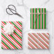 Estos diseños festivos de estilo Navidad presentan estribos de color verde, blanco y rojo. Envolver hojas de papel como estas puede ser divertido de usar al preparar regalos para celebrar a los Navidades.